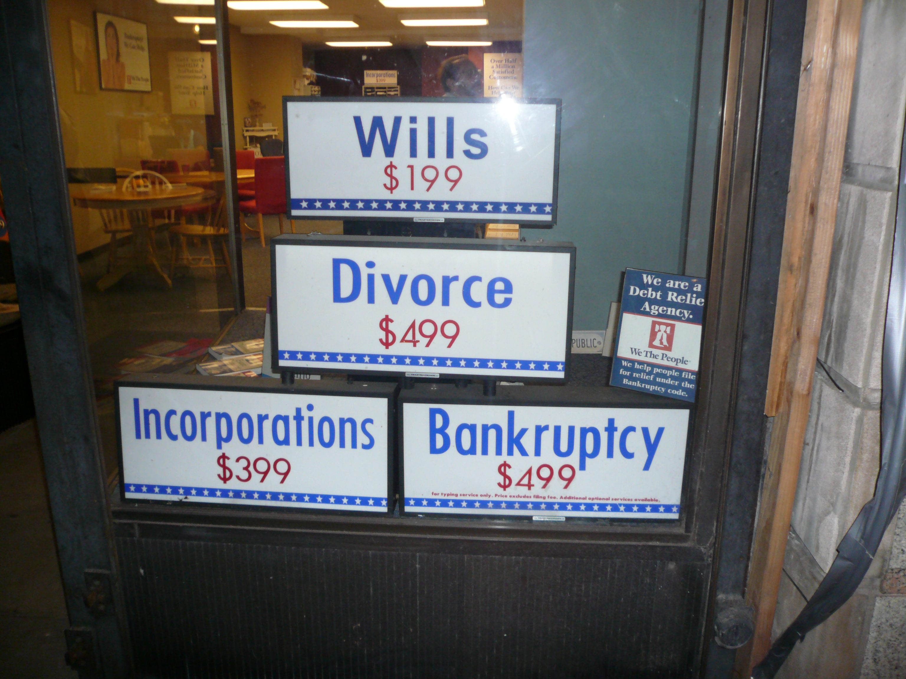 Wills, divorce, incorporations and bankruptcy. A one-stop shop.
